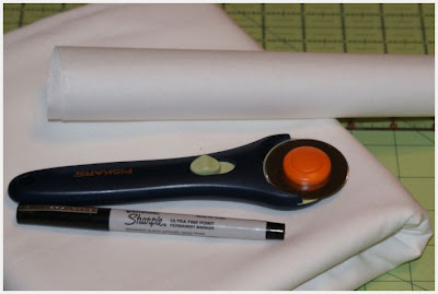 square up all 4 sides of your fabric.then cut desired label size from it.
